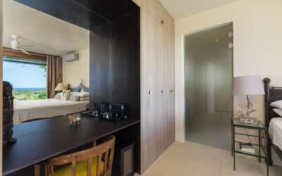 La planta más baja de la casa está diseñada como un piso independiente. Hay acceso directo a la terraza y a la zona de la piscina desde todas las habitaciones. Esta habitación está equipada con un dormitorio, una sala de estar y una cocina americana y es perfecta para los invitados, amigos o familiares que vengan de visita. La gran piscina infinita y las tumbonas ofrecen unas vistas incomparables sobre Flamingo y el puerto deportivo. Este es el lugar perfecto para relajarse y ver la puesta de sol después de un largo día en el paraíso. Esta casa tiene muchas comodidades que han sido especialmente instaladas por los propietarios, como un sistema de alarma, un ablandador de agua Juturna, paneles solares para calentar el agua, un sistema de reciclaje de agua para regar el jardín, una piscina infinita de agua salada que es mucho menos agresiva que una piscina de cloro, y un sistema de riego del jardín (planta tratamiento biológico).