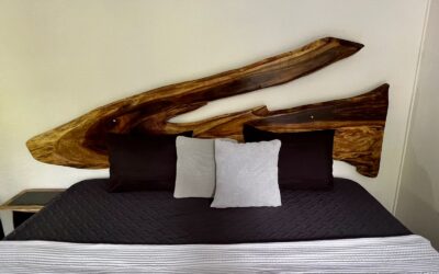 das Hauptschlafzimmer mit Bath-en-Suite und Glasfront zum Pool