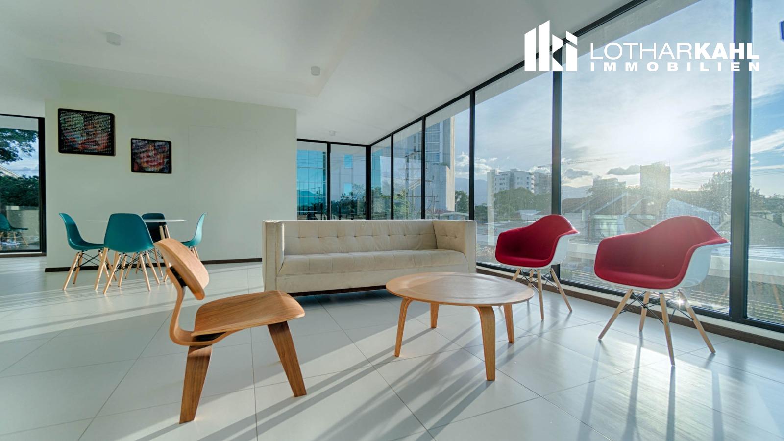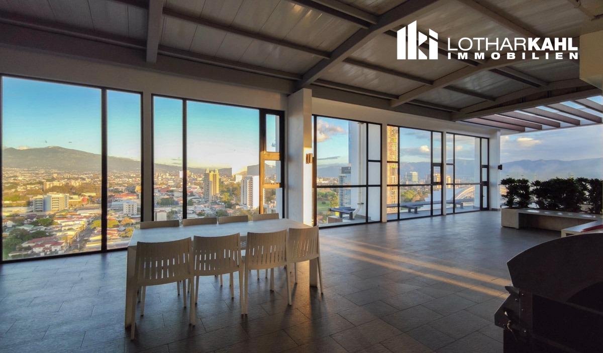 In der Hauptstadt San Jose kommt im angesagten Stadtviertel “ Rohrmoser “ diese zwei Zimmerwohnung im 12. Stock zum Verkauf. Sie besticht durch gute Raumaufteilung, hohe Decken, Helligkeit und durch ein modernes Gebäude.